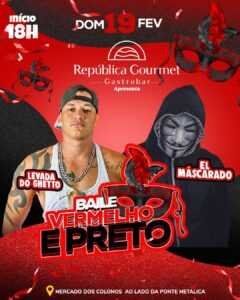 O tradicional baile “Vermelho e Preto” que já virou marca registrada de todos os carnavais de Rio Branco acontece logo mais à noite, no restaurante República Gourmet, no Mercado dos Colonos, ao lado da Ponte Metálica, a partir das 18h, com duas das melhores atrações locais: Levada do Gheto e El Mascarado.