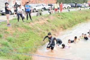 Realizado em parceria com a Acre Running, equipe que organiza eventos esportivos no Estado, o desafio foi uma corrida com obstáculos que simulou situações especiais enfrentadas pelo BOPE. As crianças participantes puderam testar e superar seus limites como prova de realização pessoal, e se divertiram na companhia dos policiais da unidade operacional.