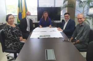 Participaram da reunião o vice-presidente, desembargador Roberto Barros; o diretor de Gestão Estratégica, Raimundo Angelim; e a assessora-chefe Jurídico, Myria Greyce Mendes.