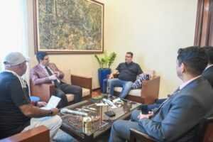 Nesta terça-feira, 28, o governador Gladson Cameli esteve reunido, no Palácio Rio Branco, com Dudé Lima e Júlio Cezar Farias, membros da comissão organizadora.
