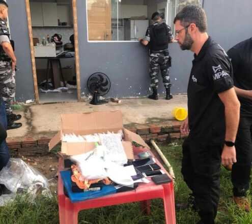 Durante o cumprimento das buscas foram encontrados na residência do investigado uma grande quantidade de drogas do tipo cocaína e maconha, certidão de nascimento e documentos de identificação ideologicamente falsos. Diante das evidências de flagrante, o investigado e outra pessoa que se encontrava na casa foram encaminhados para a Delegacia de Flagrantes.