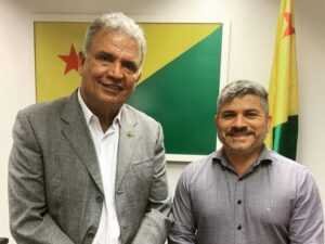 Sérgio Petecão também recebeu nesta segunda-feira(07) o diretor-geral da Embrapa Acre, Bruno Pena Carvalho, para conversar sobre os projetos desenvolvidos no Acre com ajuda das emendas do senador. “Estamos realizando seminários nos municípios isolados sobre estratégias para a implementação da pecuária de corte e do desenvolvimento das cadeias produtivas do café. Essa parceria é uma das formas que trabalhamos para levar o desenvolvimento para o interior do Acre” explica o senador.