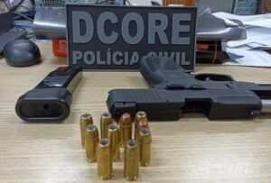 A Polícia Civil por meio da Delegacia de Combate a Roubos e Extorsões – DCORE prendeu no início da tarde desta segunda-feira, 10, P.I.A.S. de 30 anos, portando uma pistola G2C cal. .40, sem a devida documentação.