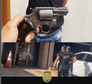 A arma, um revólver calibre 38′, estava municiada na cintura do investigado durante abordagem policial. O preso foi levado para especializada pra lavratura de auto de prisão em flagrante e em seguida colocado à disposição da justiça.
