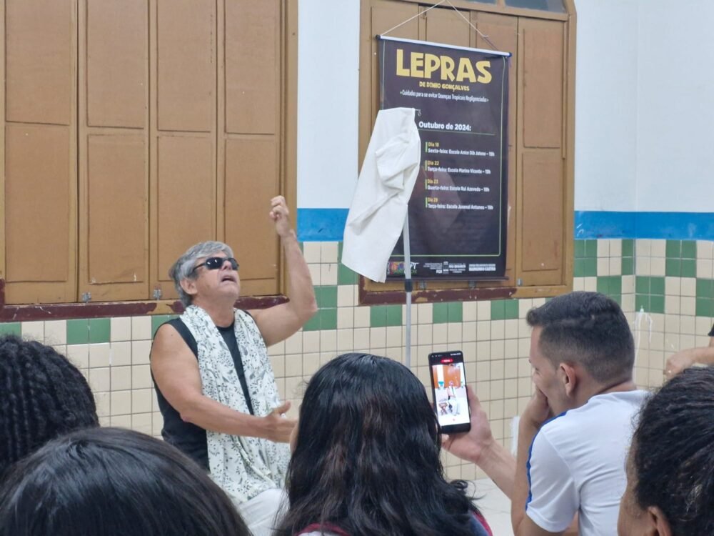 A peça “Lepras”, escrita e encenada por Dinho Gonçalves, aborda a hanseníase (lepra) por meio de histórias reais de moradores da Casa de Acolhida Souza Araújo, em Rio Branco. O espetáculo busca sensibilizar o público e promover empatia por essas pessoas, que muitas vezes enfrentam exclusão social e familiar.