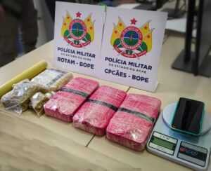 Os militares conseguiram realizar a abordagem e ao averiguar o conteúdo da sacola encontraram aproximadamente cinco quilos de substância aparentando ser cocaína.