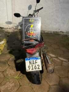 Em patrulhamento, os militares ouviram via Centro de Operações Policiais Militares (Copom) informações sobre o roubo a uma motocicleta Honda CG 150 Fan. A guarnição visualizou a dupla em uma motocicleta nas proximidades de uma instituição de ensino superior. Após acompanhamento, foi possível realizar a abordagem.