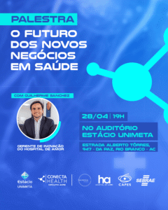 De 28 a 30 de abril, Rio Branco será palco de uma intensa programação voltada à inovação e ao empreendedorismo na área da saúde, por meio do Programa Conecta Health – Circuito Acre. A iniciativa reúne grandes parceiros como o Sebrae, o Hospital de Amor (por meio do Harena Inovação), a Coordenação de Aperfeiçoamento de Pessoal de Nível Superior (CAPES), Universidade Federal do Acre, a Estácio Unimeta e a Uninorte, com o objetivo de fomentar soluções e tecnologias voltadas aos desafios da saúde pública na região.