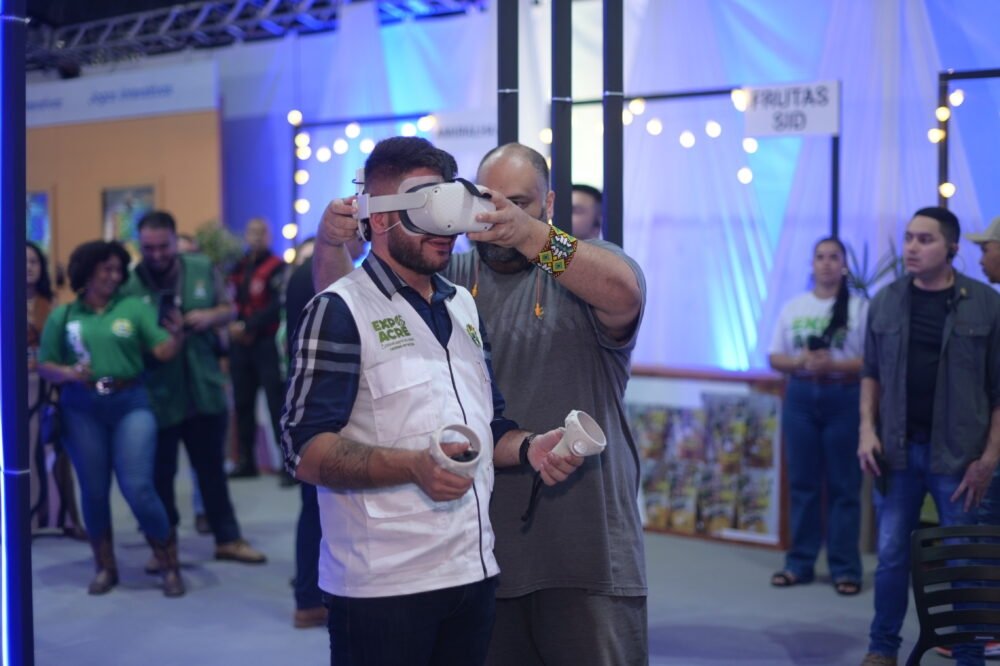Após a solenidade de abertura, o governador Gladson Cameli visitou o espaço Sebrae, que este ano está voltado à Inovação, Bioeconomia e Sustentabilidade, com diversas ações interativas para os visitantes e novidades para os empreendedores e aqueles que desejam empreender.